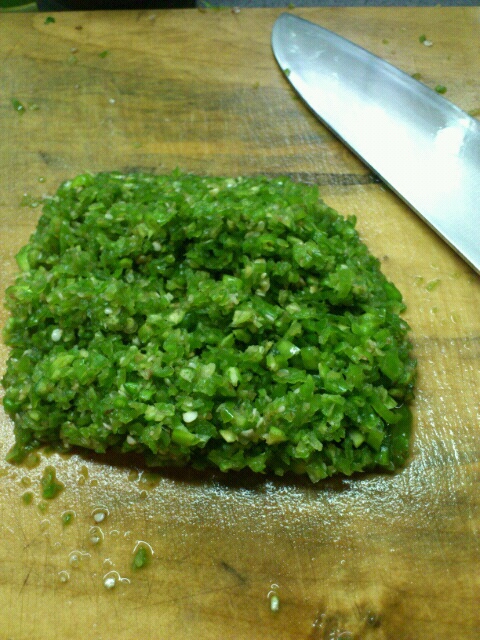 全部の実を入れると辛すぎるので1/3位を種を取り出し刻む