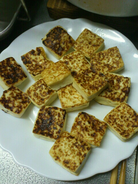 まず、豆腐を一口大に切ってレンチンして水抜