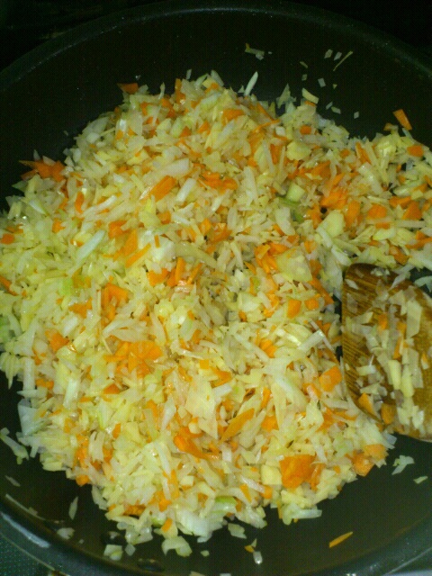 微塵切りにした玉葱、人参、ジャガイモを入れ、しっかり炒める