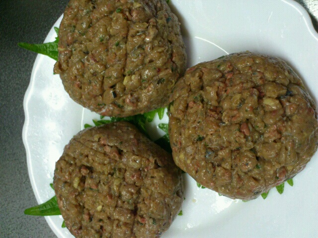 玉葱一個、細かくみじん切りにし、水にさらして徹底的に絞る