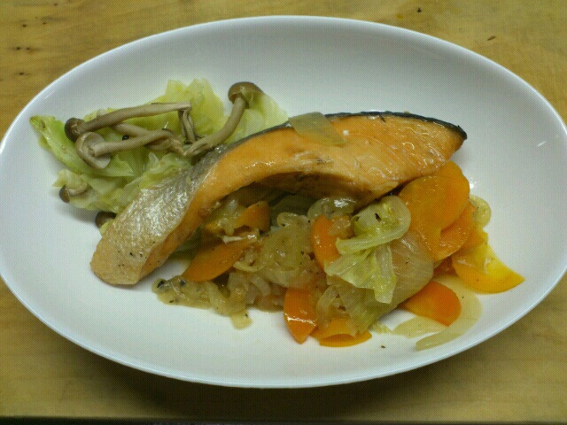 玉葱スライス、人参スライスをフライパンに敷き詰めて黒胡椒少々