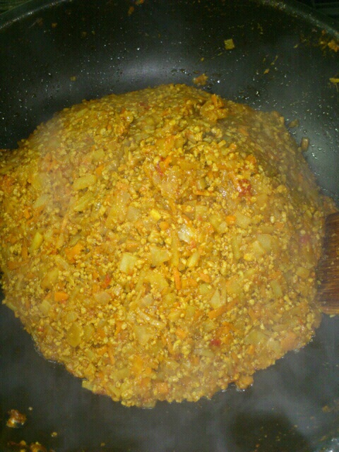 微塵切り人参一本、微塵切りジャガイモ小5個を投入