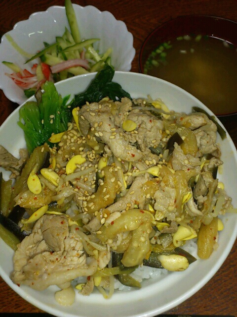 茄子豚キムチ丼