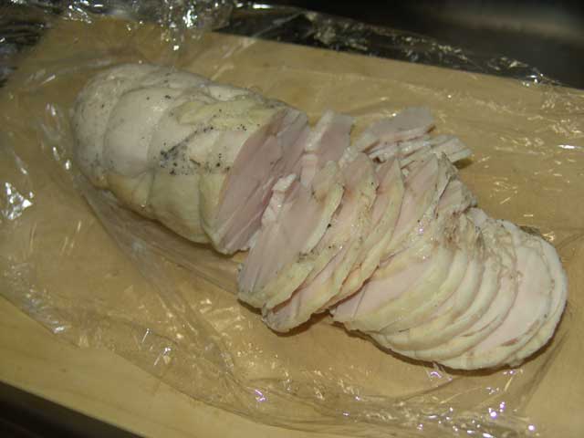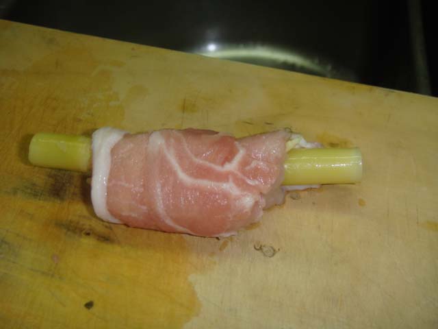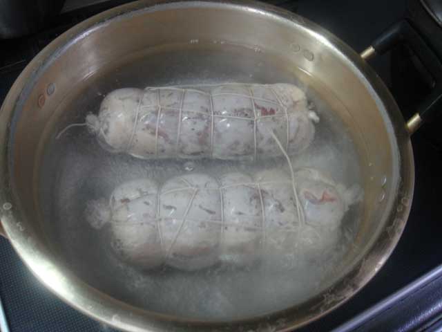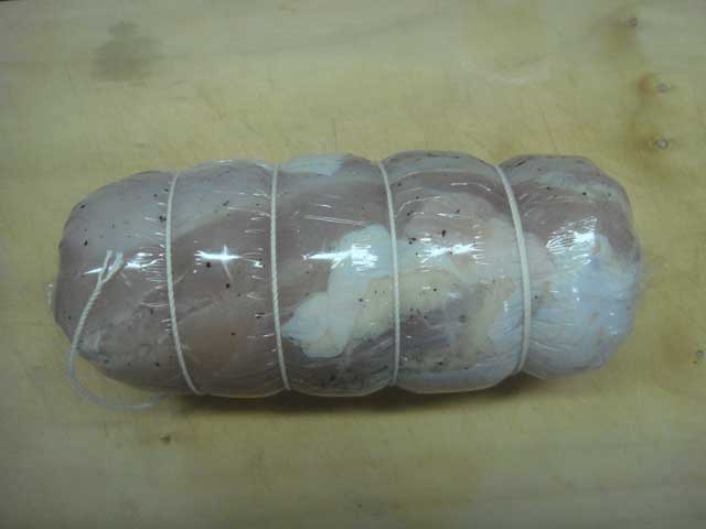 肉二枚をラップで巻いてタコ糸で縛りました
