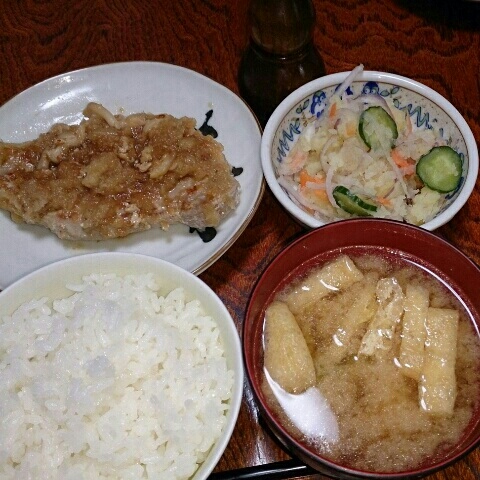 塩麹ポークソテー大根下ろしキノコソースがけ